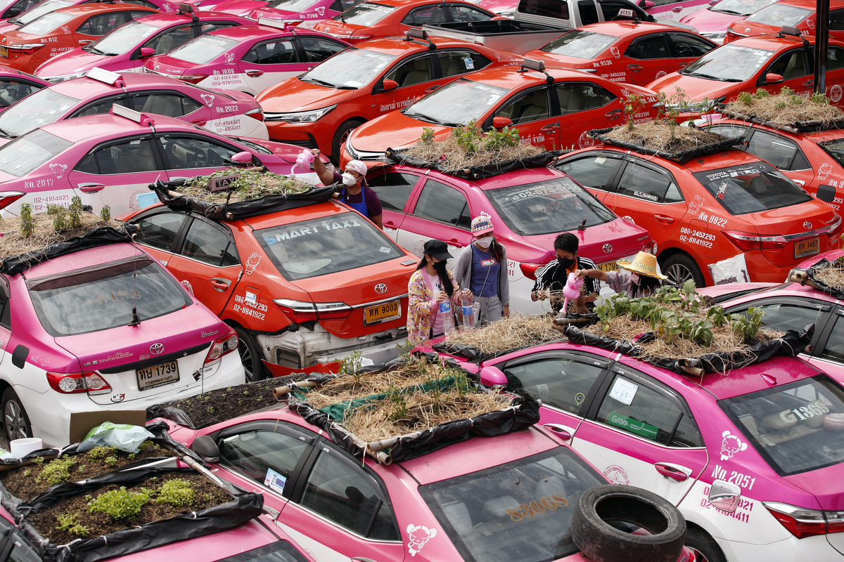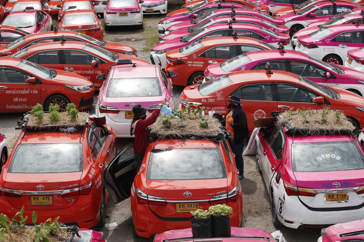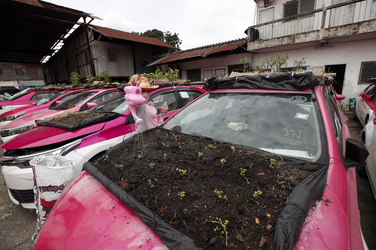 Međutim, kompanija Ratchaphruek odlučila je koristiti krovove vozila kako bi na njima pravili male saksije u kojima uzgajaju povrće, koje zatim dijele taksistima, kao i svima koji su zbog pandemije ostali bez posla.
